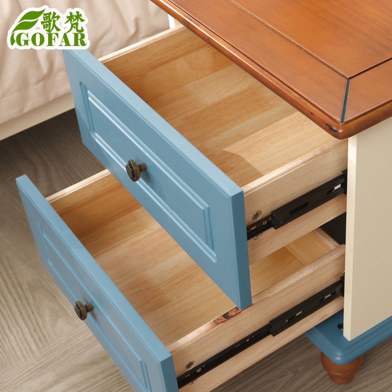 歌梵 床头柜 地中海美式乡村蓝色田园床边柜 储物卧室家具 品质保障 用料环保 质保5年--不单卖